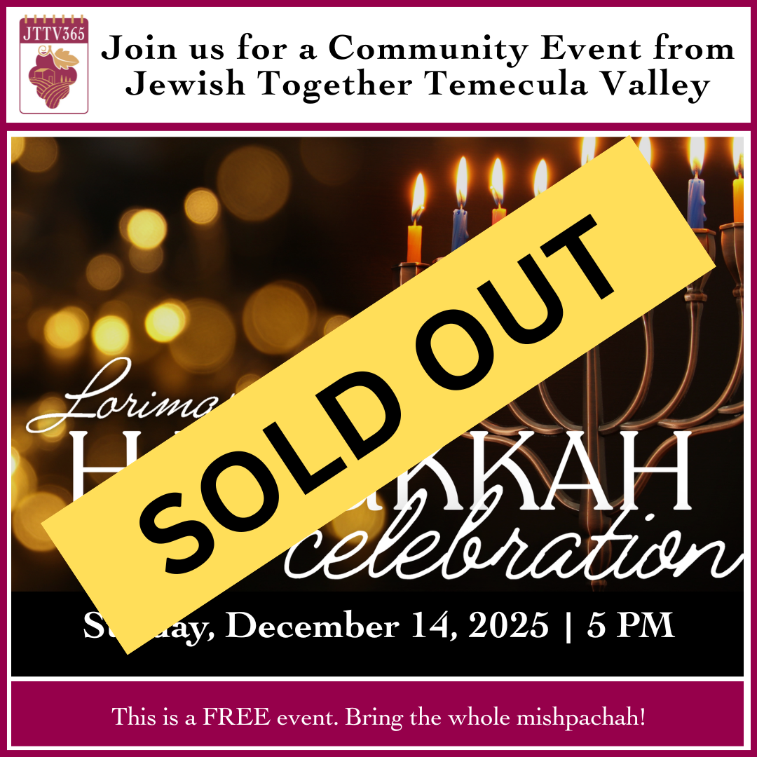 Lorimar Vineyards & Winery 39990 Anza Road, Temecula, CA, United StatesCelebrate the Festival of Lights with us at Lorimar Winery, in partnership with JTTV365! This joyful evening will feature a Menorah Lighting, Israeli dancing, and plenty of delicious Hanukkah […]